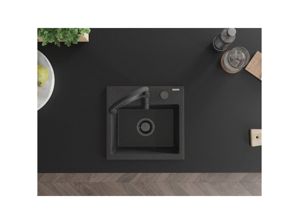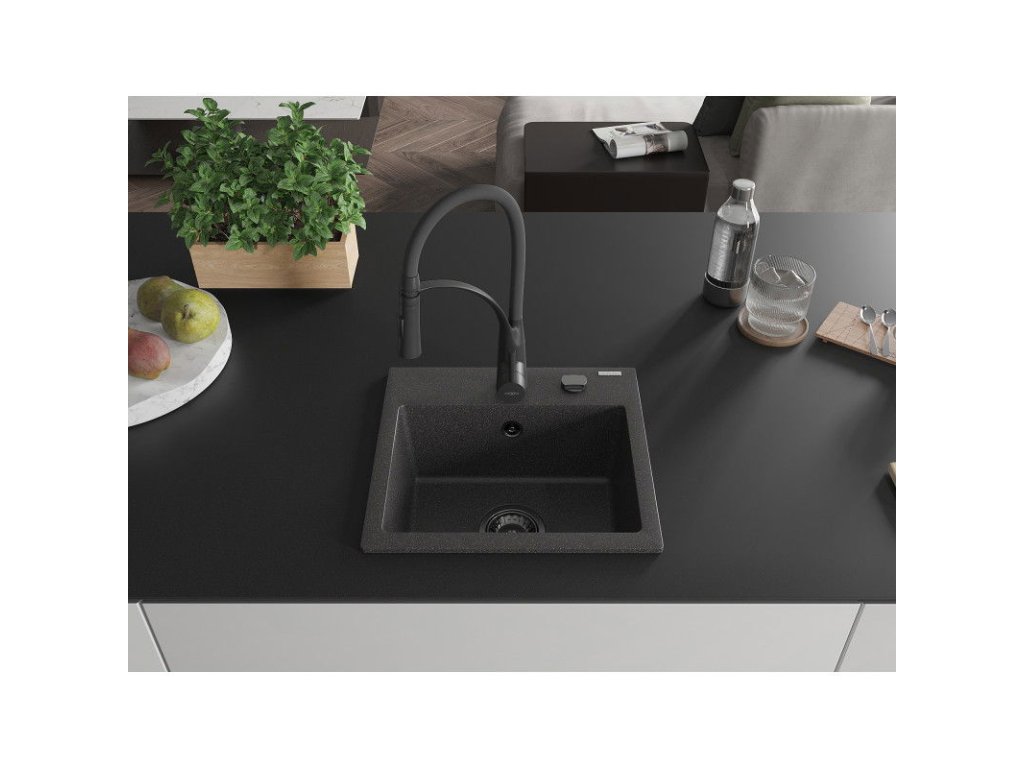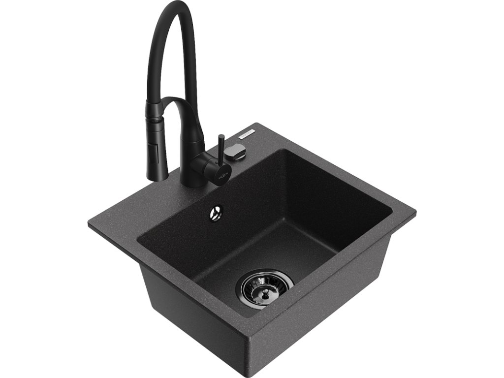 Granitový drez Mexen Milo s 1 misou a kuchynskou batériou Aster, čierna škvrnitá - 6505-76-73450-70-B