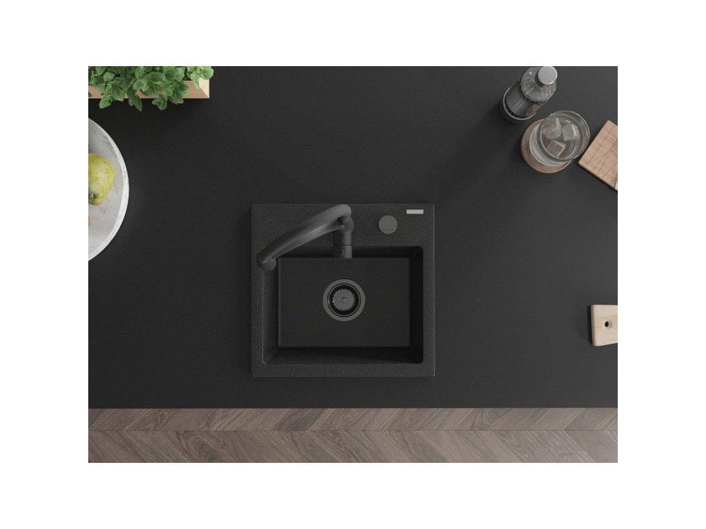 Granitový drez Mexen Milo s 1 misou a kuchynskou batériou Aster, čierna/strieborná metalíza - 6505-73-73450-70-B