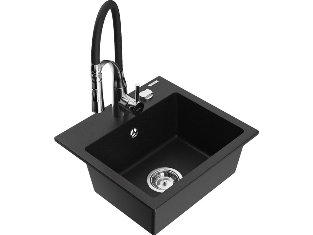 Granitový drez Mexen Milo s 1 misou a kuchynskou batériou Aster, čierny - 6505-77-73450-07