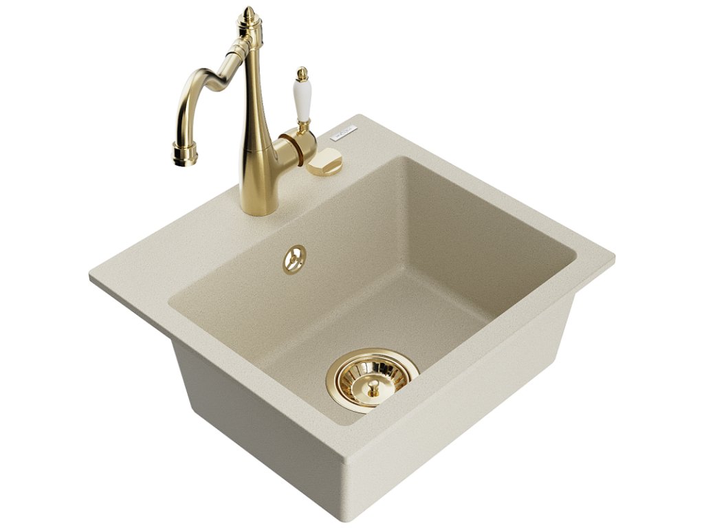 Granitový drez Mexen Milo s 1 misou a kuchynskou batériou Carla, béžový - 6505-69-670700-50