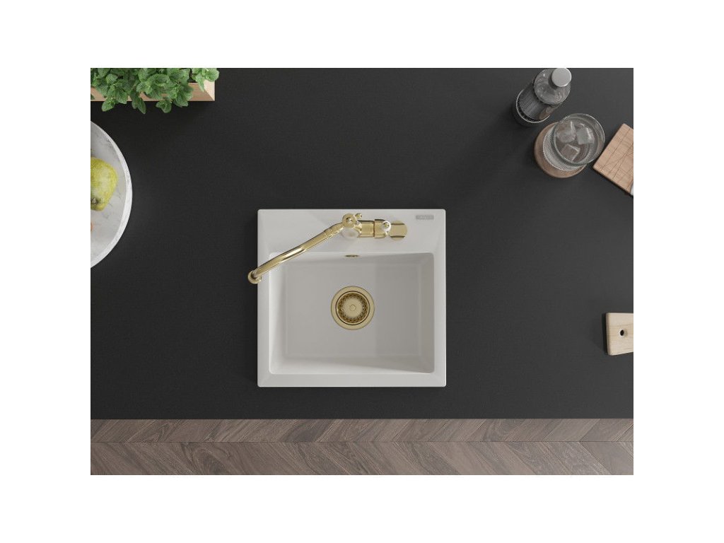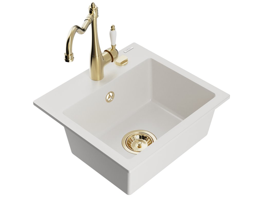 Granitový drez Mexen Milo s 1 misou a kuchynskou batériou Carla, biely - 6505-20-670700-50