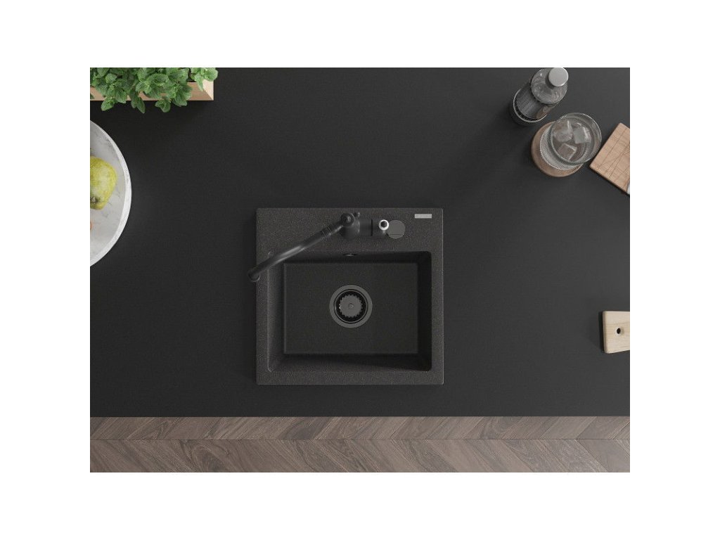 Granitový drez Mexen Milo s 1 misou a kuchynskou batériou Carla, čierna škvrnitá - 6505-76-670700-70-B