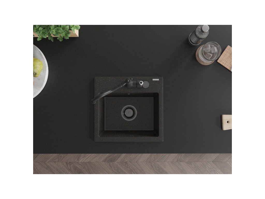 Granitový drez Mexen Milo s 1 misou a kuchynskou batériou Carla, čierna/zlatá metalíza - 6505-75-670700-70-B