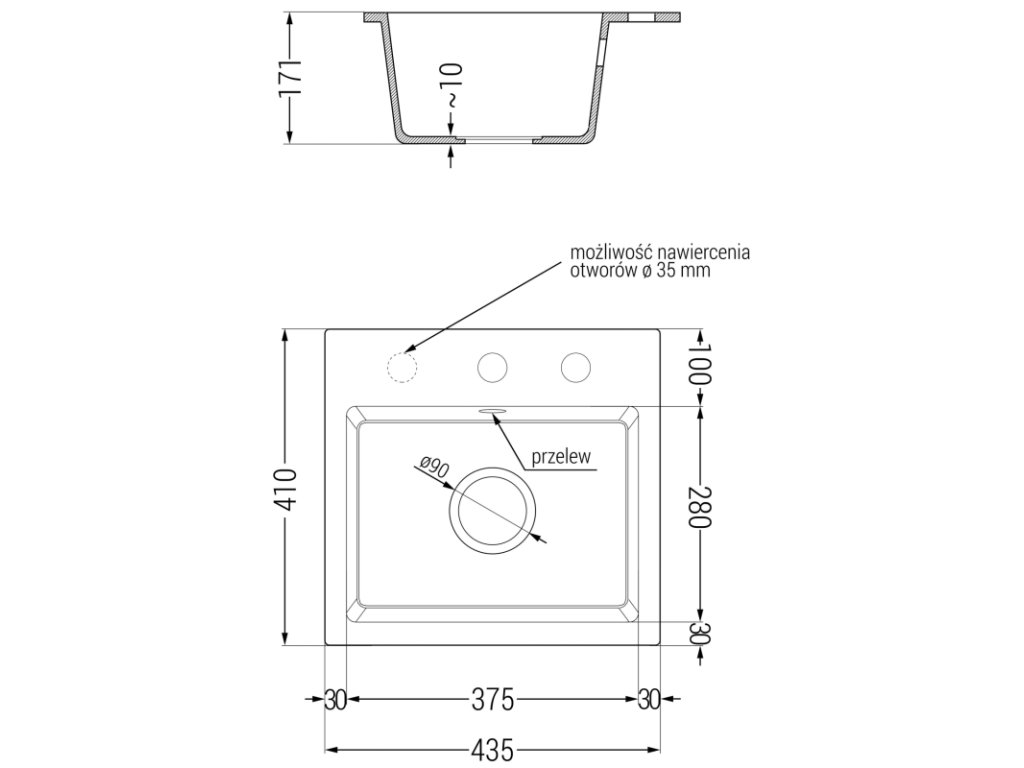 Jeden dodatočný vyfrézovaný otvor ø35 na vlastné dierovanie