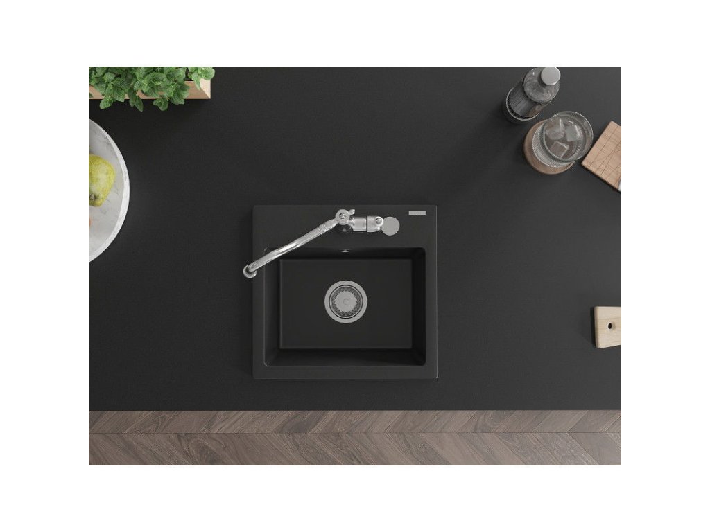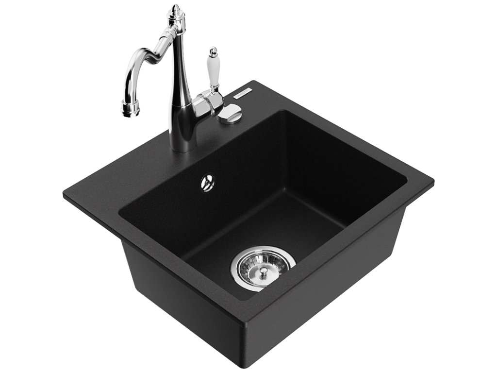 Granitový drez Mexen Milo s 1 misou a kuchynskou batériou Carla, čierny - 6505-77-670700-00