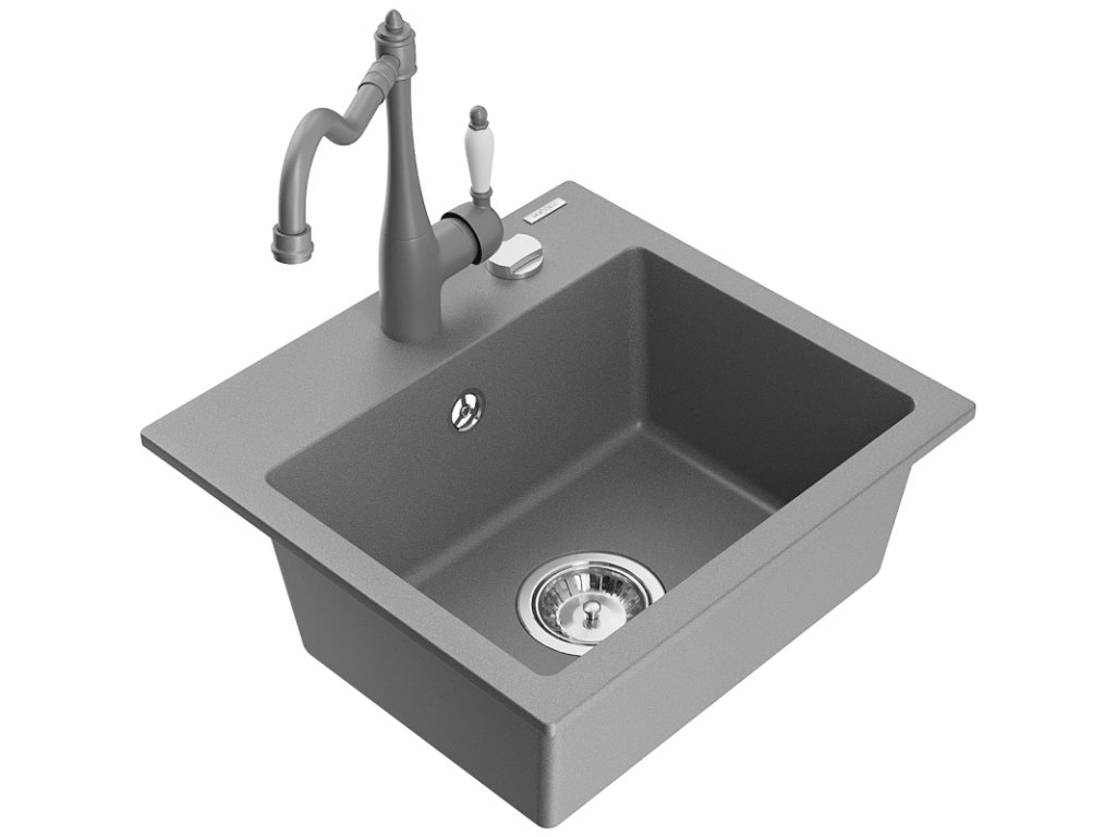 Granitový drez Mexen Milo s 1 misou a kuchynskou batériou Carla, sivý - 6505-71-670700-71