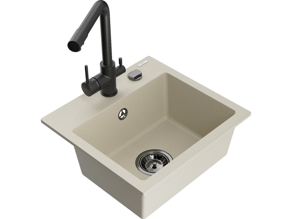 Granitový drez Mexen Milo s 1 misou a kuchynskou batériou Duero, béžový - 6505-69-671600-70