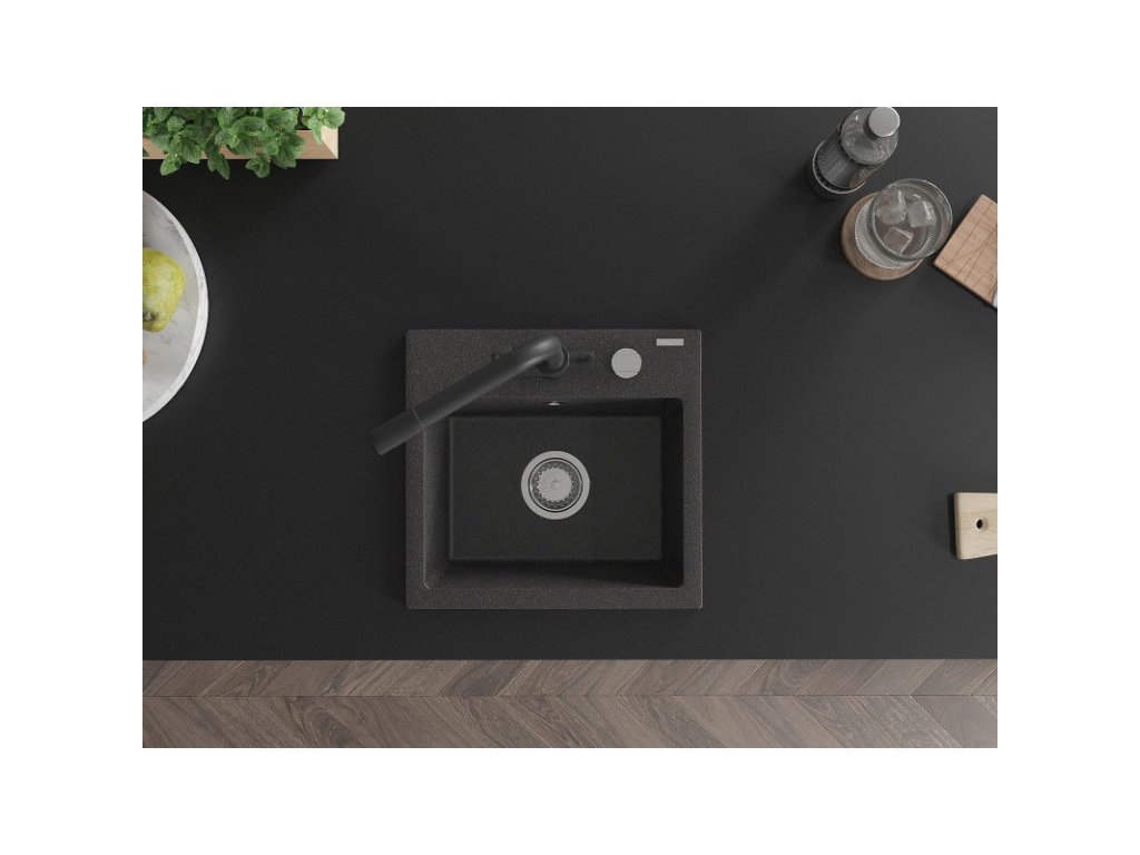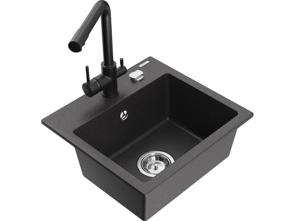 Granitový drez Mexen Milo s 1 misou a kuchynskou batériou Duero, čierna škvrnitá - 6505-76-671600-70