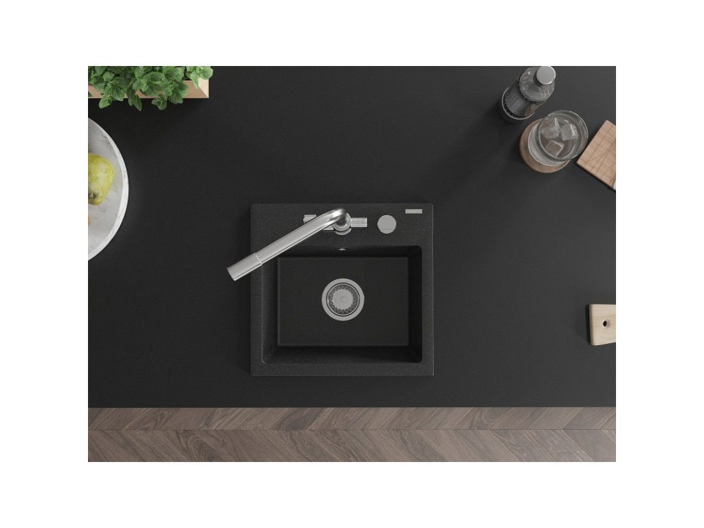 Granitový drez Mexen Milo s 1 misou a kuchynskou batériou Duero, čierna/strieborná metalíza - 6505-73-671600-00
