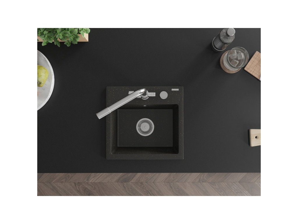Granitový drez Mexen Milo s 1 misou a kuchynskou batériou Duero, čierna/zlatá metalíza - 6505-75-671600-00