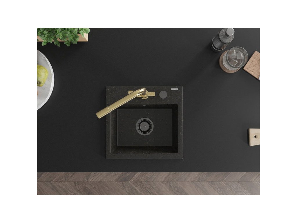 Granitový drez Mexen Milo s 1 misou a kuchynskou batériou Duero, čierna/zlatá metalíza - 6505-75-671600-50-B