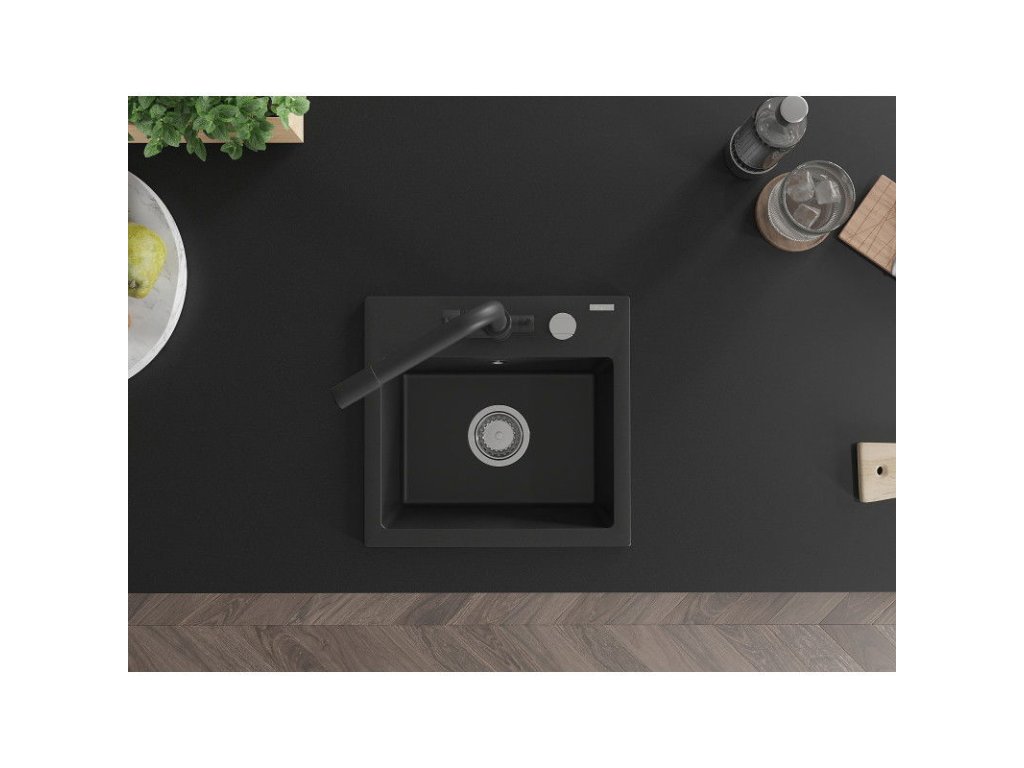 Granitový drez Mexen Milo s 1 misou a kuchynskou batériou Duero, čierny - 6505-77-671600-70