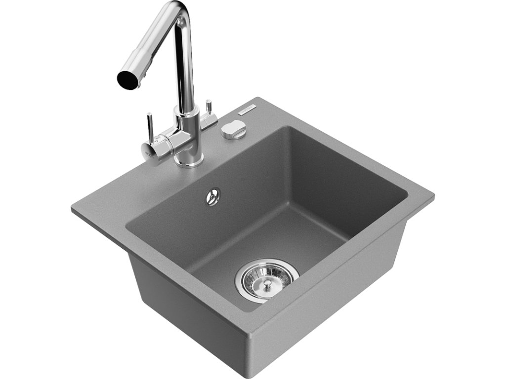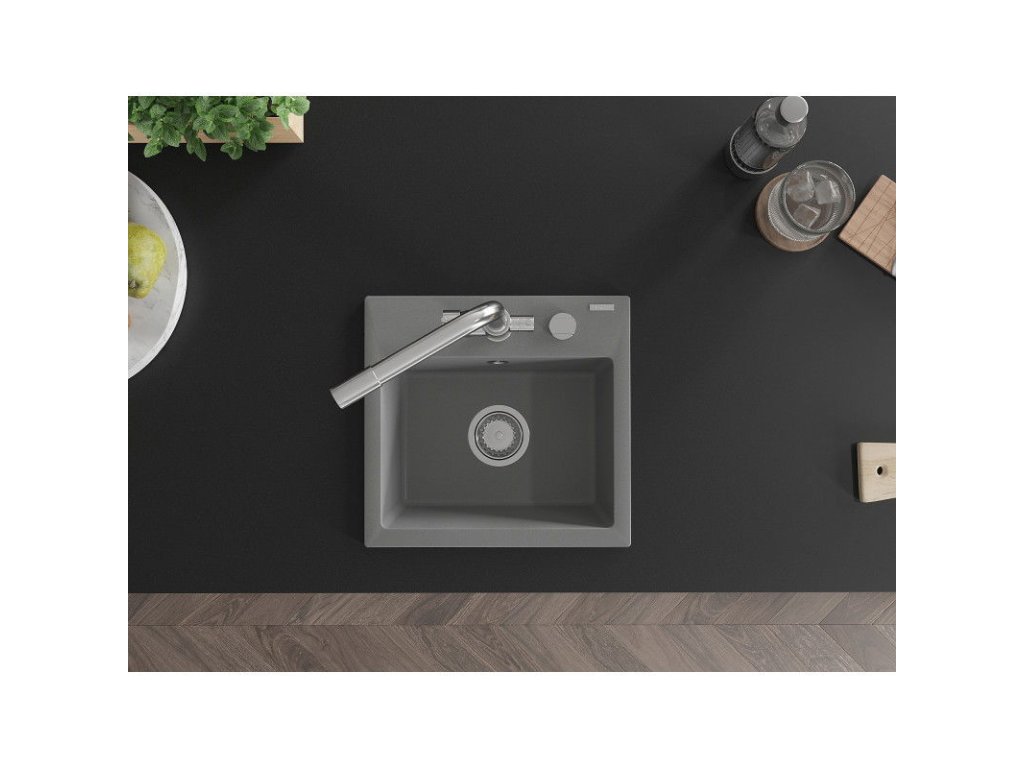 Granitový drez Mexen Milo s 1 misou a kuchynskou batériou Duero, sivý - 6505-71-671600-00