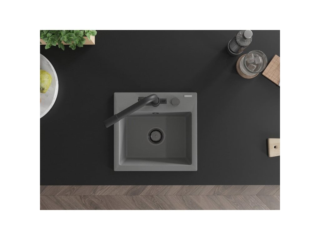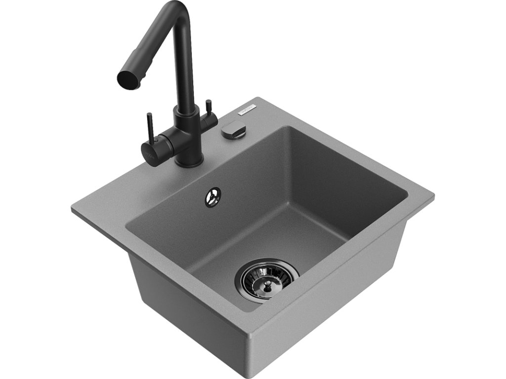 Granitový drez Mexen Milo s 1 misou a kuchynskou batériou Duero, sivý - 6505-71-671600-70-B