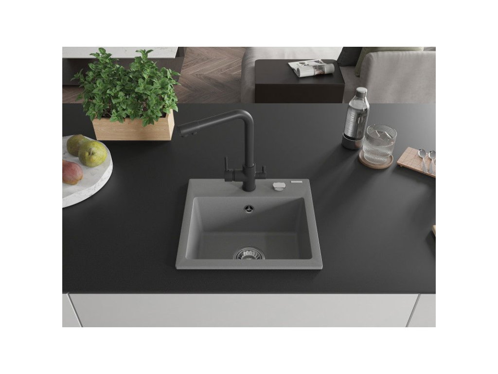 Granitový drez Mexen Milo s 1 misou a kuchynskou batériou Duero, sivý - 6505-71-671600-70