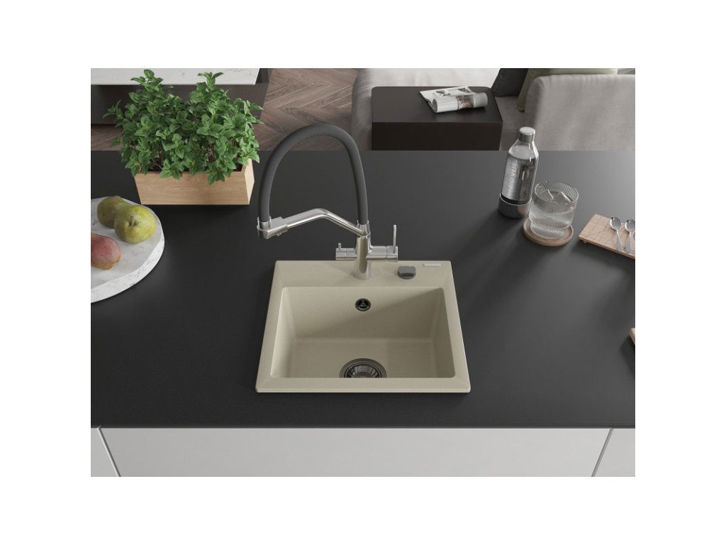 Granitový drez Mexen Milo s 1 misou a kuchynskou batériou Duo, béžový - 6505-69-671701-07-B