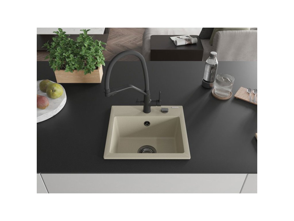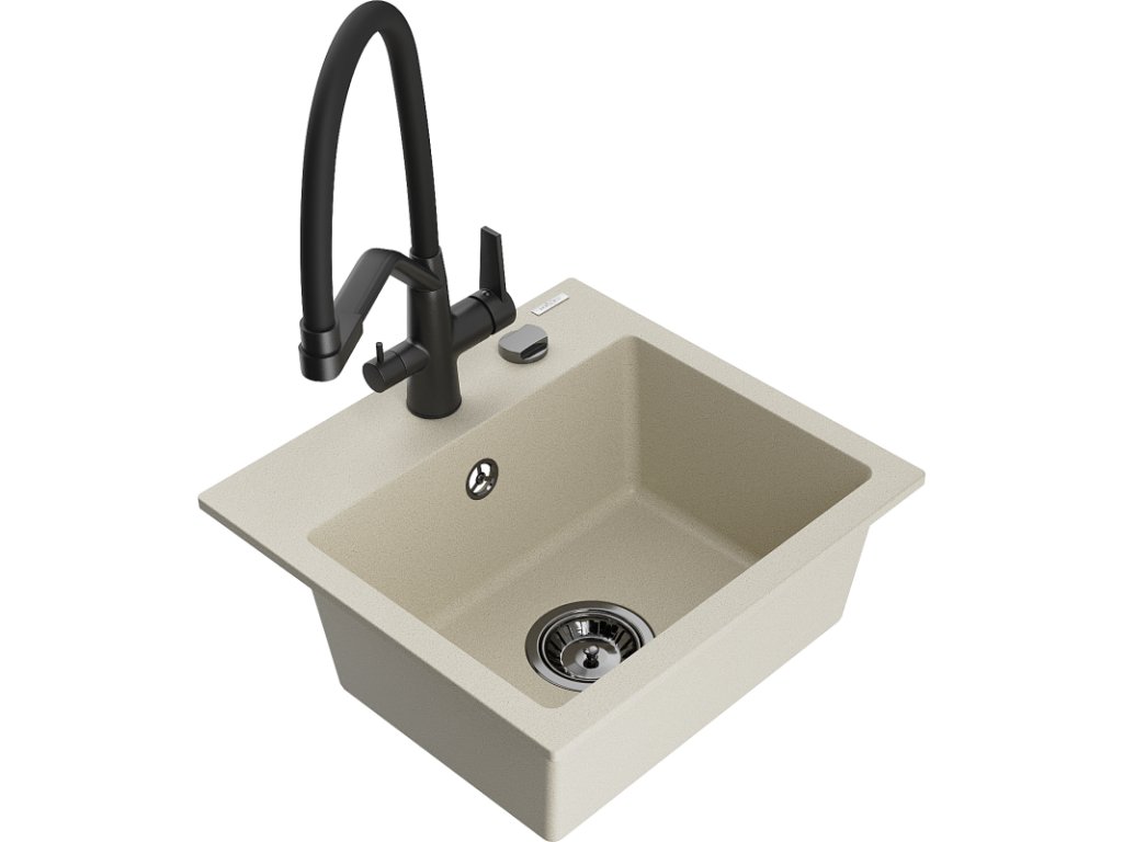 Granitový drez Mexen Milo s 1 misou a kuchynskou batériou Duo, béžový - 6505-69-671701-70-B