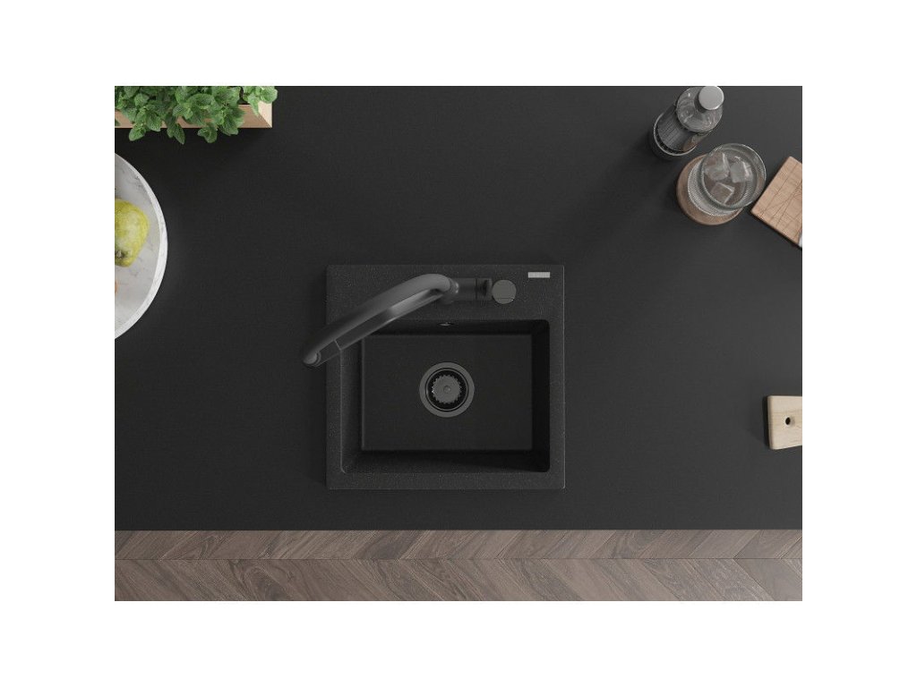 Granitový drez Mexen Milo s 1 misou a kuchynskou batériou Duo, čierna/strieborná metalíza - 6505-73-671701-70-B