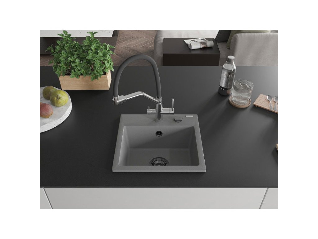 Granitový drez Mexen Milo s 1 misou a kuchynskou batériou Duo, sivý - 6505-71-671701-07-B