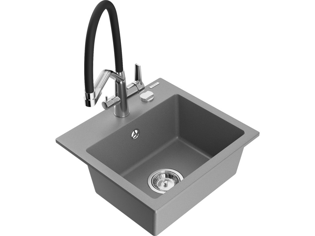 Granitový drez Mexen Milo s 1 misou a kuchynskou batériou Duo, sivý - 6505-71-671701-07