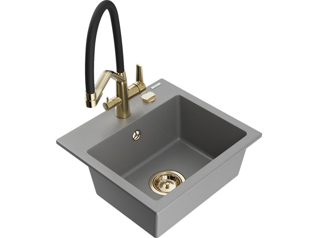 Granitový drez Mexen Milo s 1 misou a kuchynskou batériou Duo, sivý - 6505-71-671701-57-G