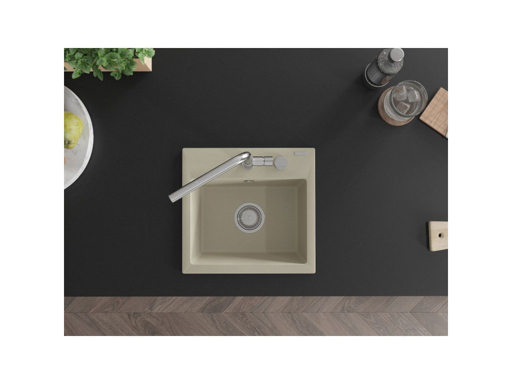 Granitový drez Mexen Milo s 1 misou a kuchynskou batériou Flora, béžová - 6505-69-670401-00