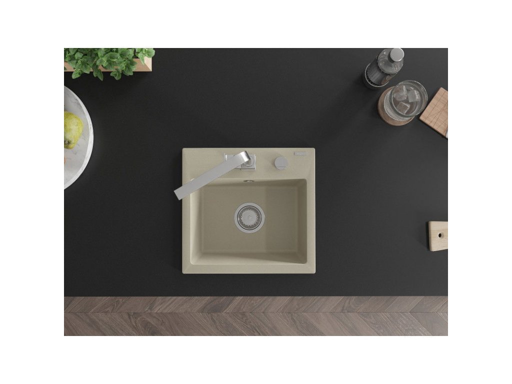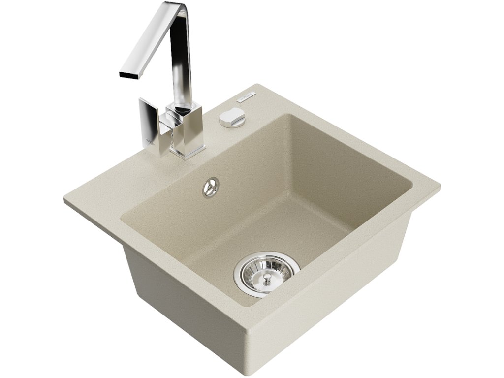 Granitový drez Mexen Milo s 1 misou a kuchynskou batériou Rita, béžový - 6505-69-670300-00