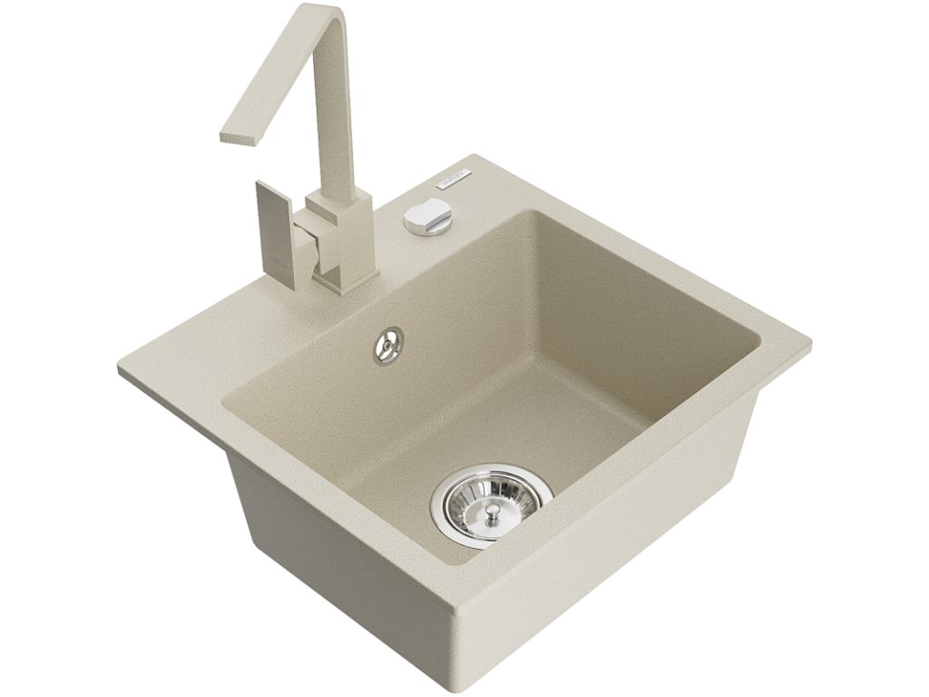 Granitový drez Mexen Milo s 1 misou a kuchynskou batériou Rita, béžový - 6505-69-670300-69