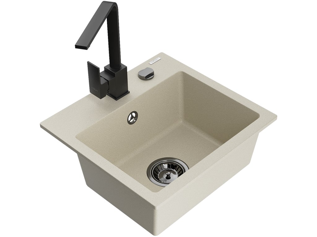 Granitový drez Mexen Milo s 1 misou a kuchynskou batériou Rita, béžový - 6505-69-670300-70