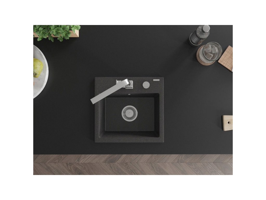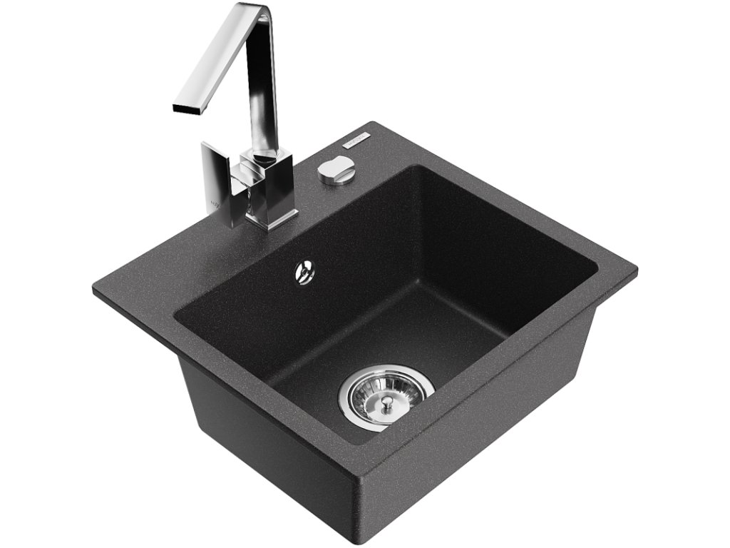 Granitový drez Mexen Milo s 1 misou a kuchynskou batériou Rita, čierna škvrna - 6505-76-670300-00
