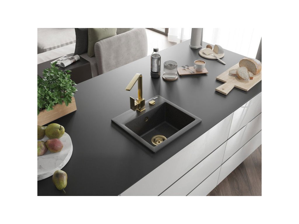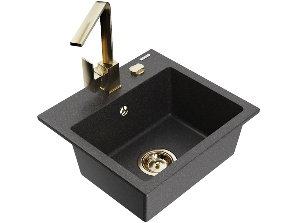 Granitový drez Mexen Milo s 1 misou a kuchynskou batériou Rita, čierna škvrna - 6505-76-670300-50