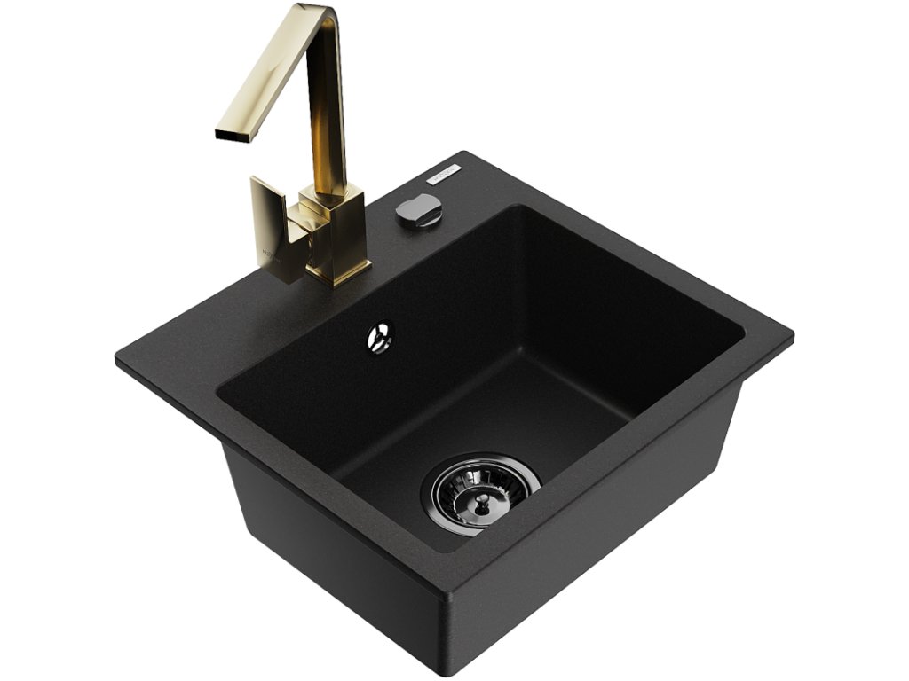 Granitový drez Mexen Milo s 1 misou a kuchynskou batériou Rita, čierny - 6505-77-670300-50-B