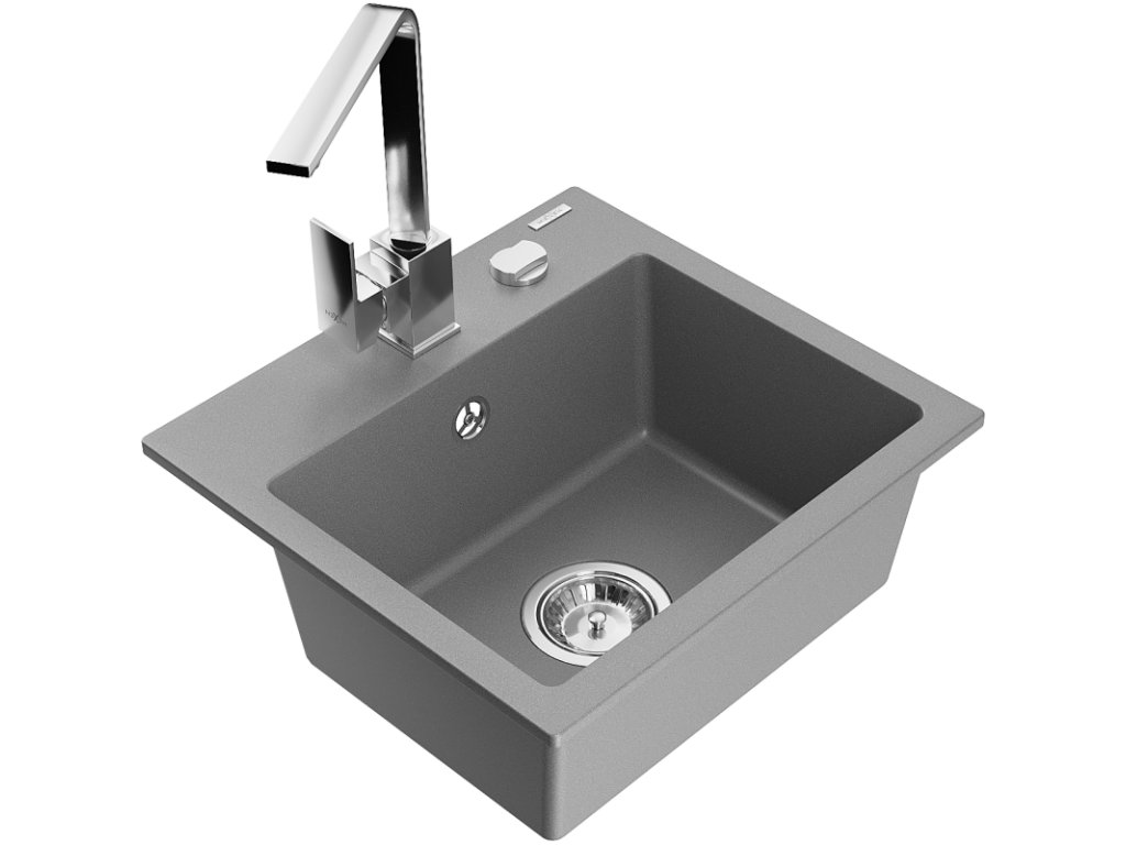 Granitový drez Mexen Milo s 1 misou a kuchynskou batériou Rita, sivý - 6505-71-670300-00