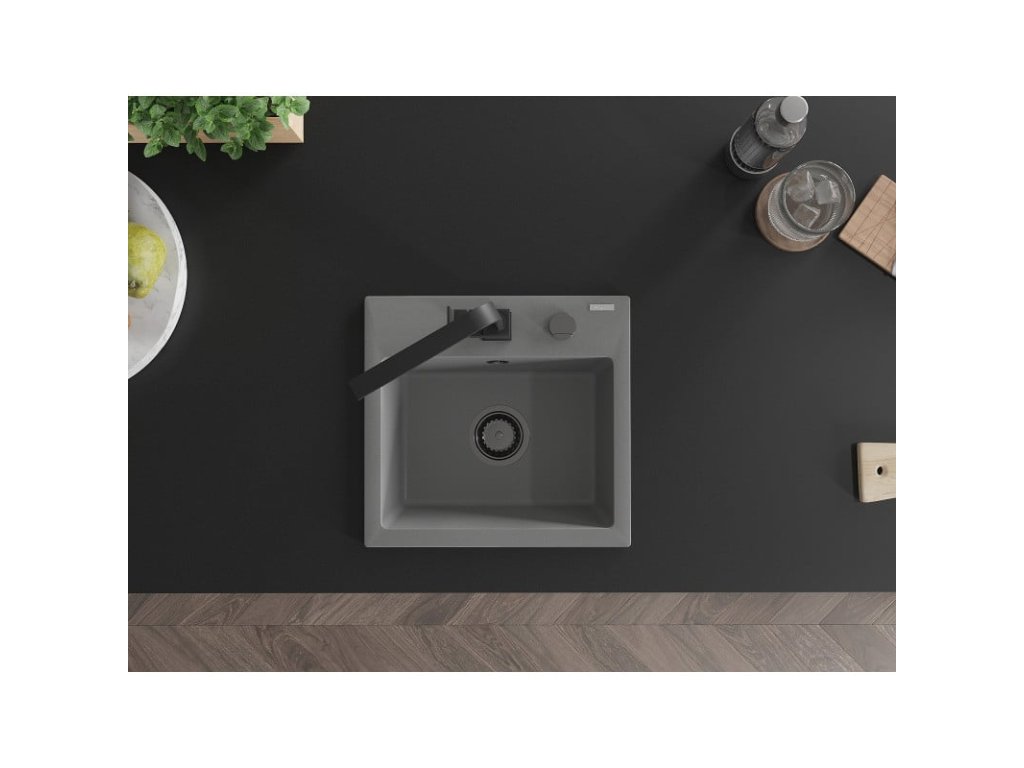 Granitový drez Mexen Milo s 1 misou a kuchynskou batériou Rita, sivý - 6505-71-670300-70-B