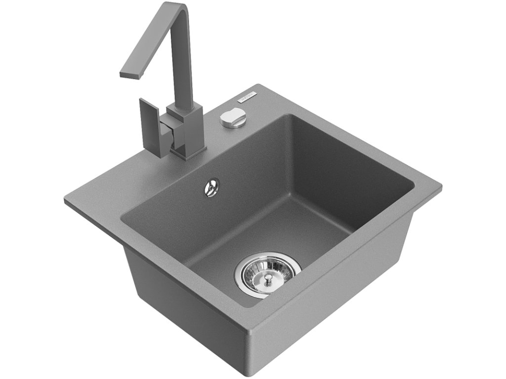 Granitový drez Mexen Milo s 1 misou a kuchynskou batériou Rita, sivý - 6505-71-670300-71