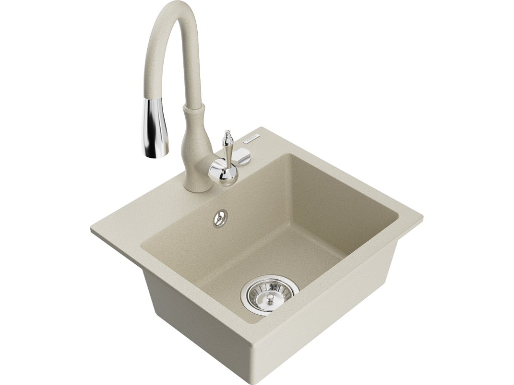 Granitový drez Mexen Milo s 1 misou a kuchynskou batériou Savita, béžový - 6505-69-672601-69