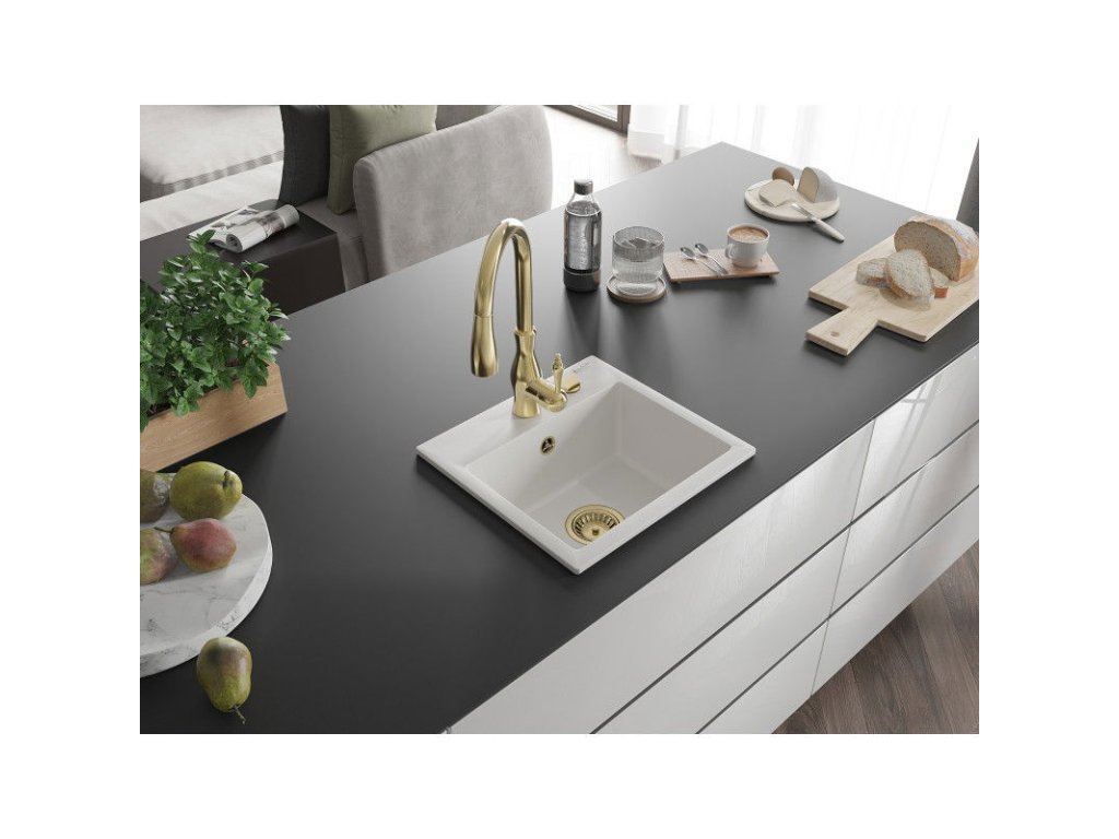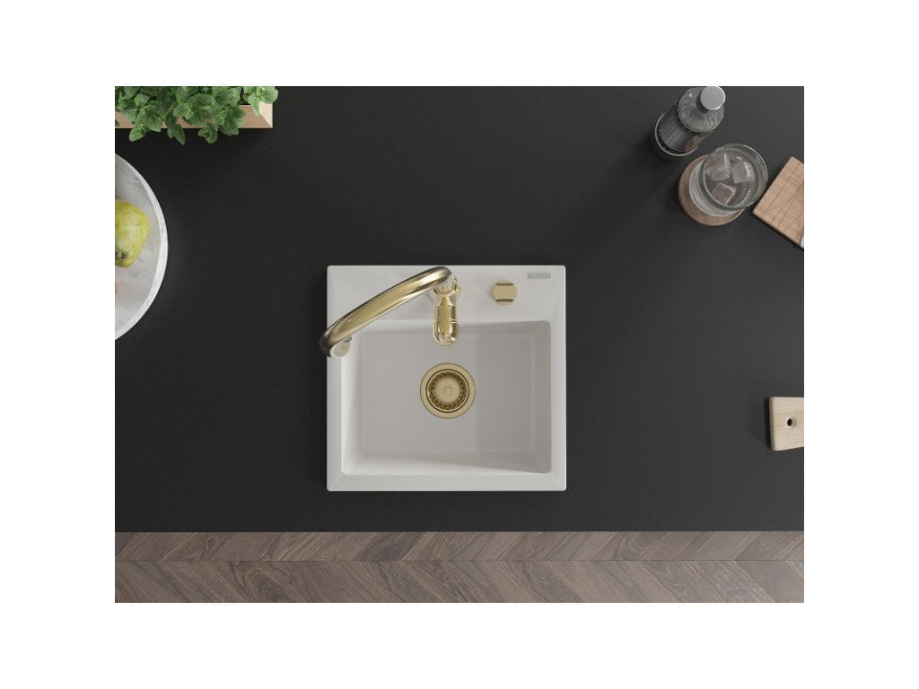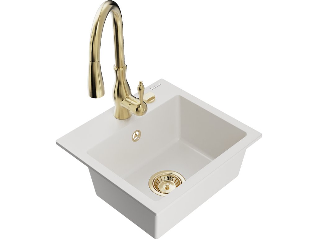 Granitový drez Mexen Milo s 1 misou a kuchynskou batériou Savita, biely - 6505-20-672601-50