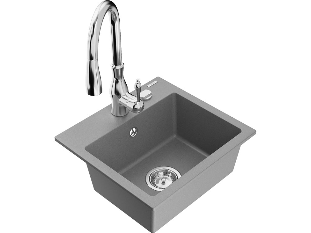 Granitový drez Mexen Milo s 1 misou a kuchynskou batériou Savita, sivý - 6505-71-672601-00