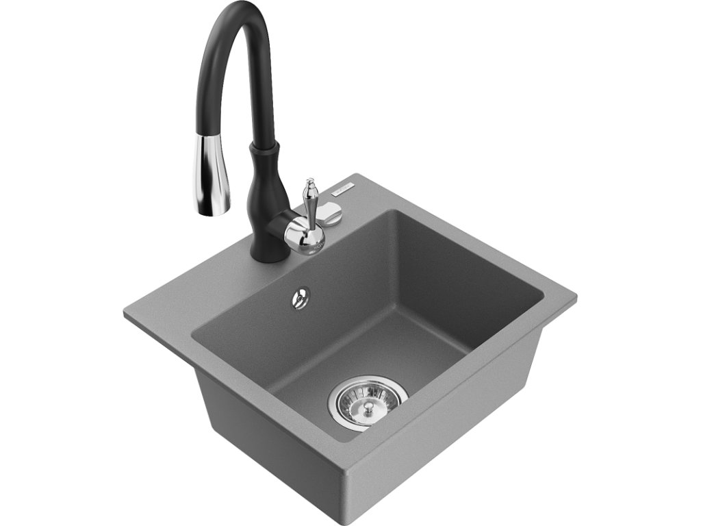 Granitový drez Mexen Milo s 1 misou a kuchynskou batériou Savita, sivý - 6505-71-672601-70
