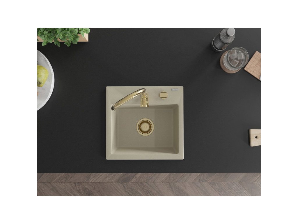 Granitový drez Mexen Milo s 1 misou a kuchynskou batériou Telma, béžový - 6505-69-670200-50