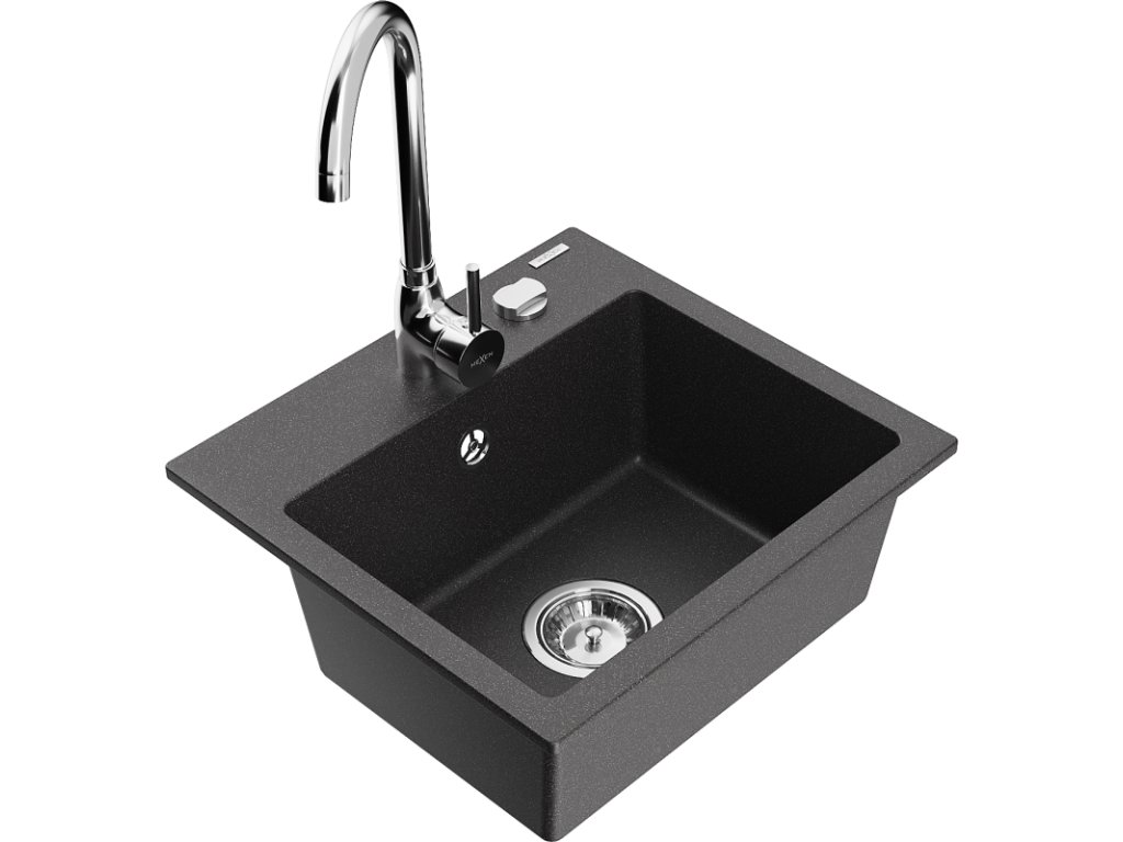 Granitový drez Mexen Milo s 1 misou a kuchynskou batériou Telma, čierna škvrna - 6505-76-670200-00