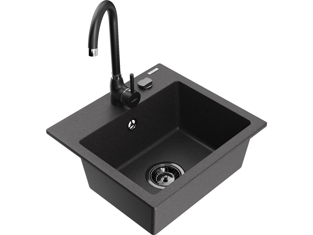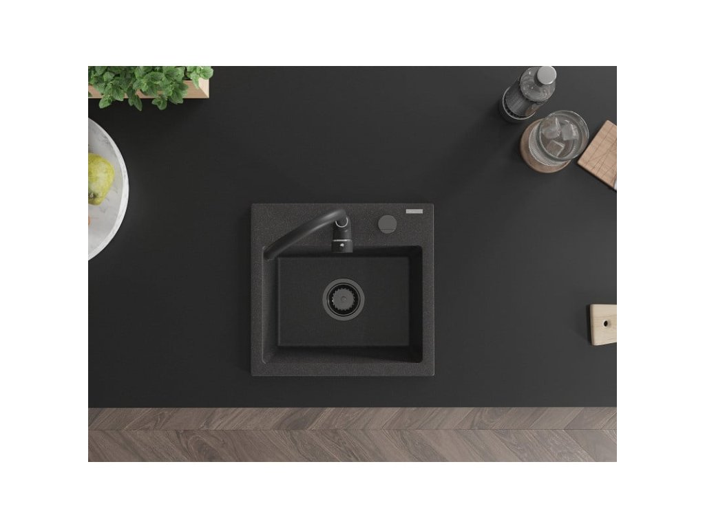 Granitový drez Mexen Milo s 1 misou a kuchynskou batériou Telma, čierna škvrnitá - 6505-76-670200-70-B