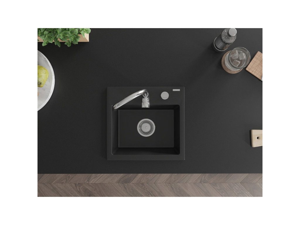 Granitový drez Mexen Milo s 1 misou a kuchynskou batériou Telma, čierny - 6505-77-670200-00
