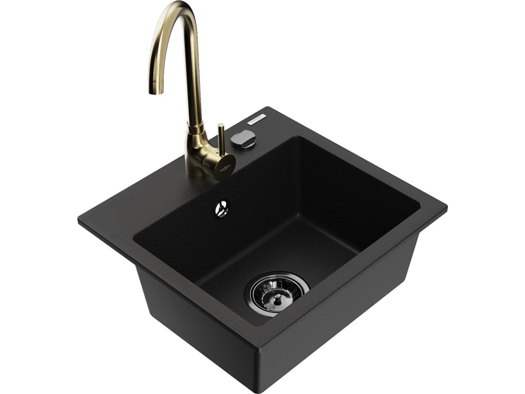 Granitový drez Mexen Milo s 1 misou a kuchynskou batériou Telma, čierny - 6505-77-670200-50-B