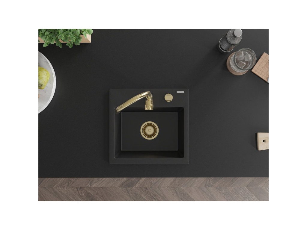 Granitový drez Mexen Milo s 1 misou a kuchynskou batériou Telma, čierny - 6505-77-670200-50