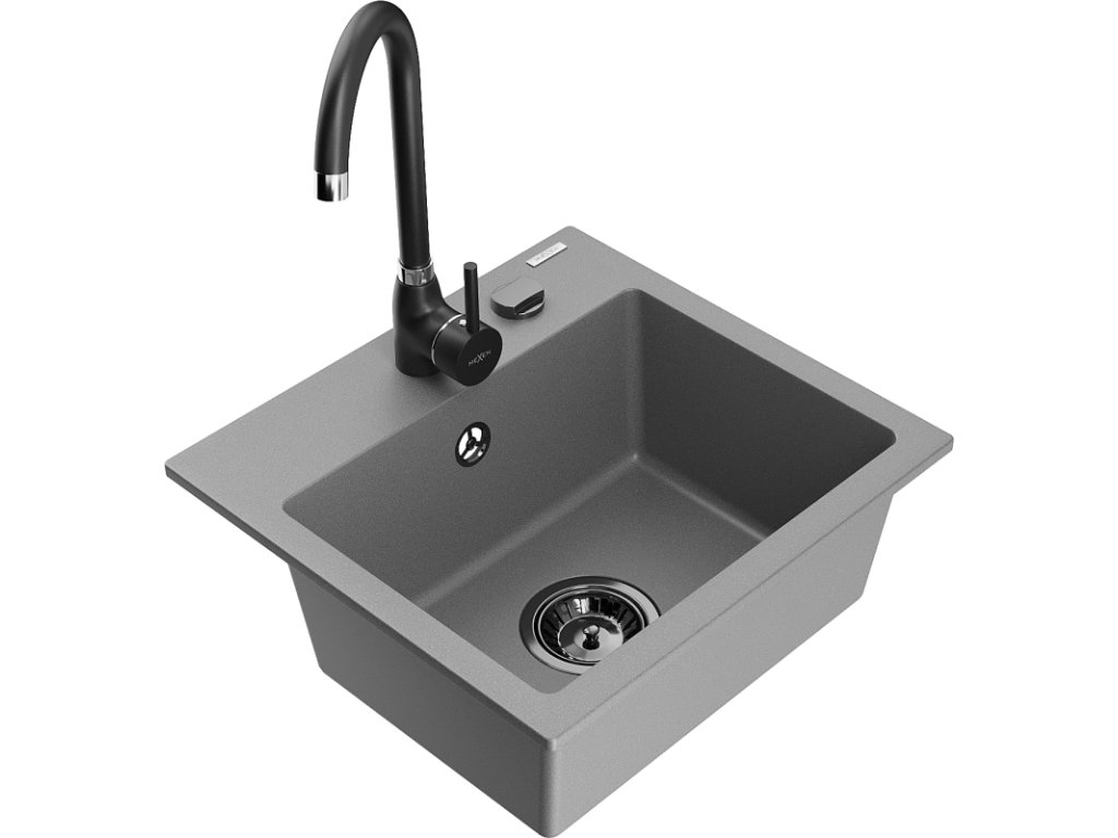 Granitový drez Mexen Milo s 1 misou a kuchynskou batériou Telma, sivý - 6505-71-670200-70-B
