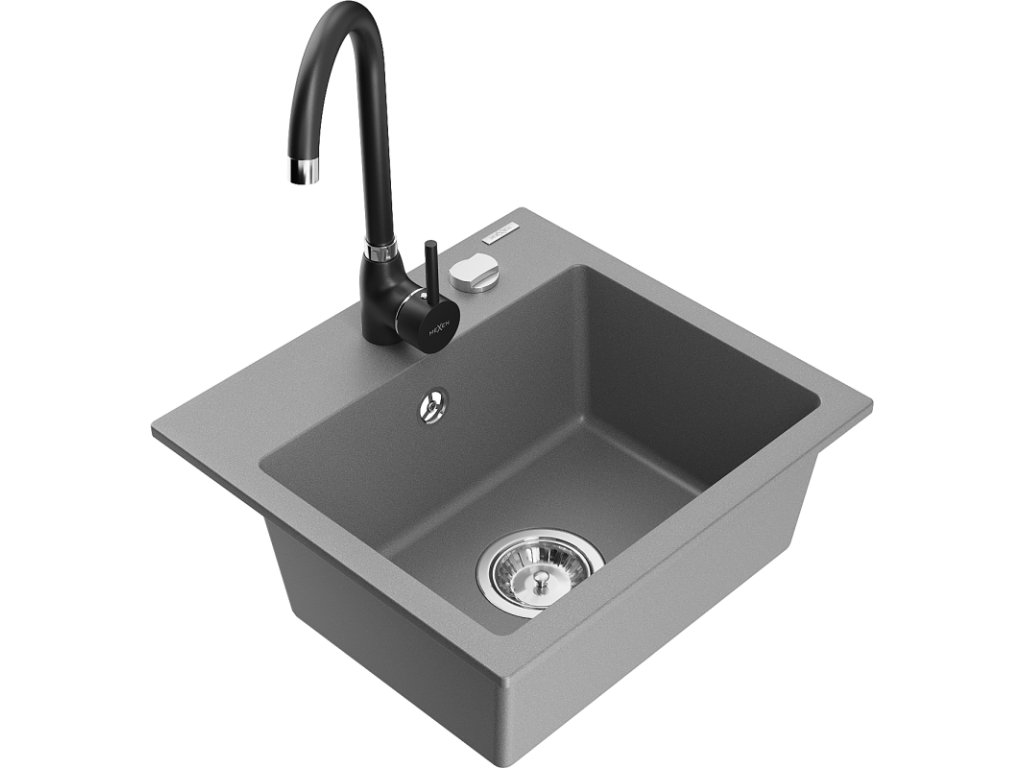 Granitový drez Mexen Milo s 1 misou a kuchynskou batériou Telma, sivý - 6505-71-670200-70