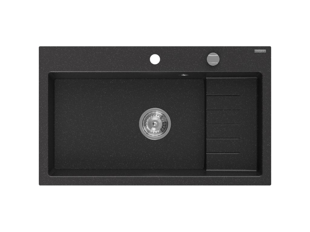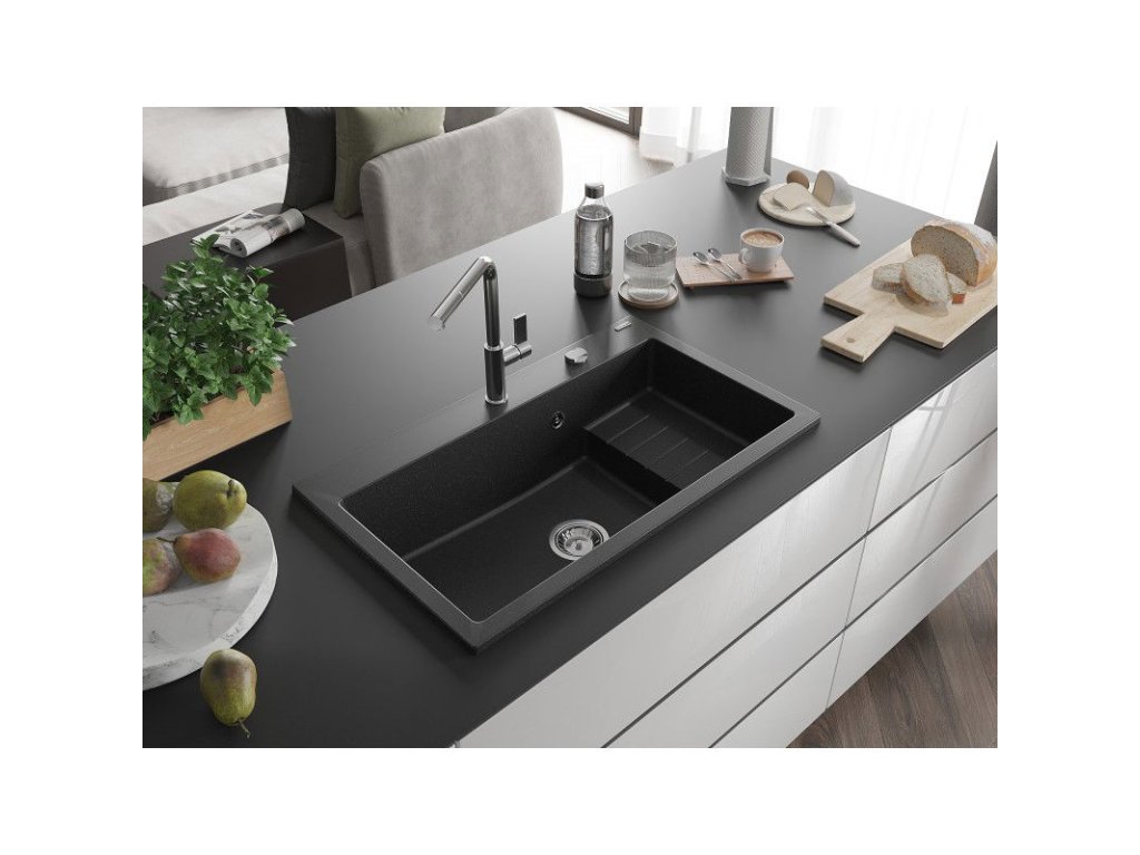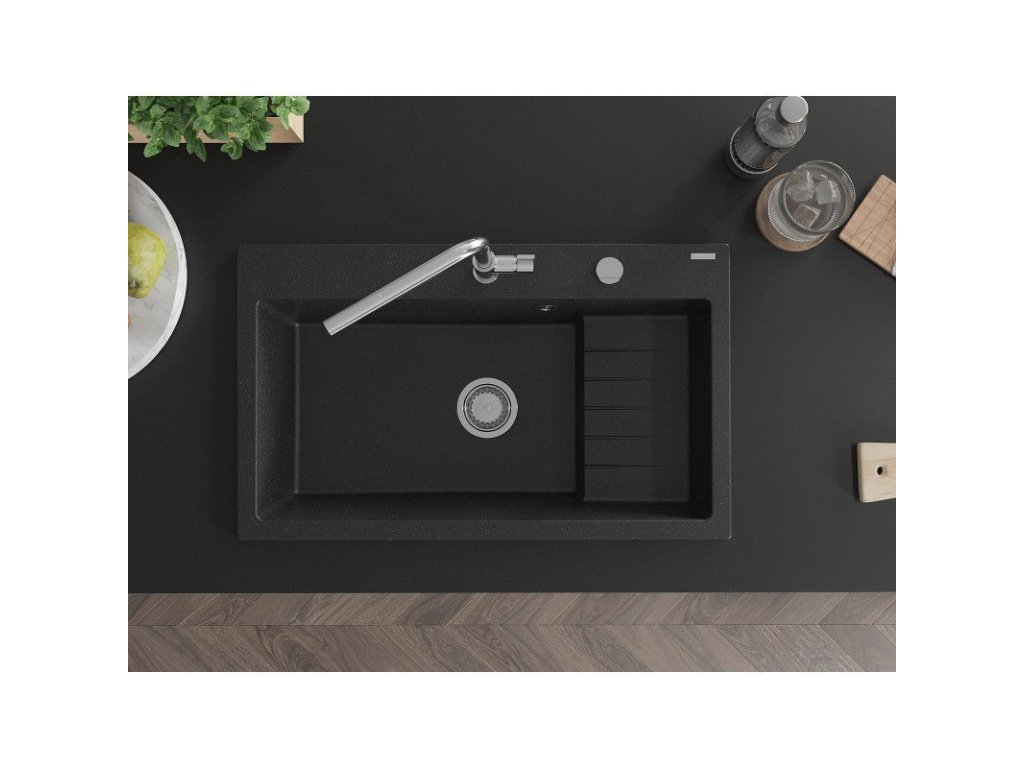 Granitový drez Mexen Omar s 1 misou 800 x 480 mm, čierna/strieborná metalíza, chrómový sifón - 6520801005-73