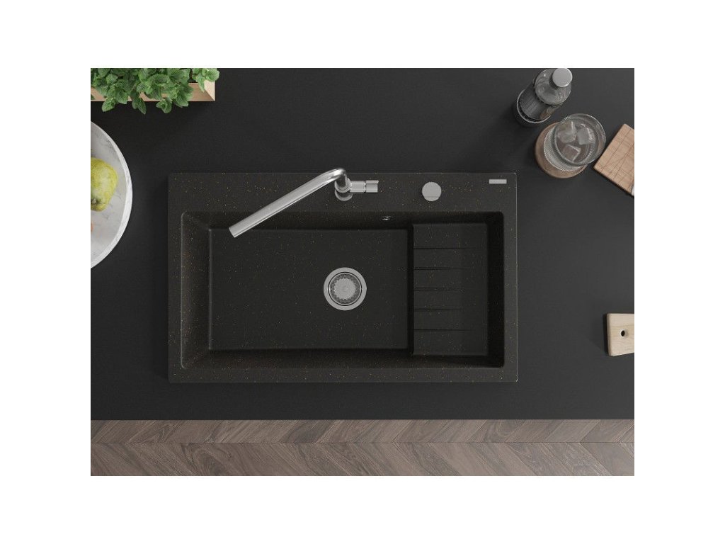 Granitový drez Mexen Omar s 1 misou 800 x 480 mm, čierna/zlatá metalíza, chrómový sifón - 6520801005-75
