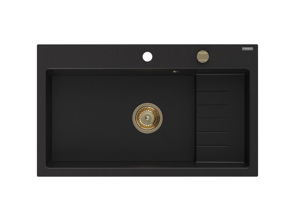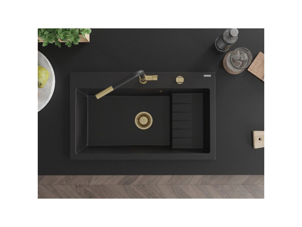 Granitový drez Mexen Omar s 1 misou 800 x 480 mm, čierny, zlatý sifón - 6520801005-77-G
